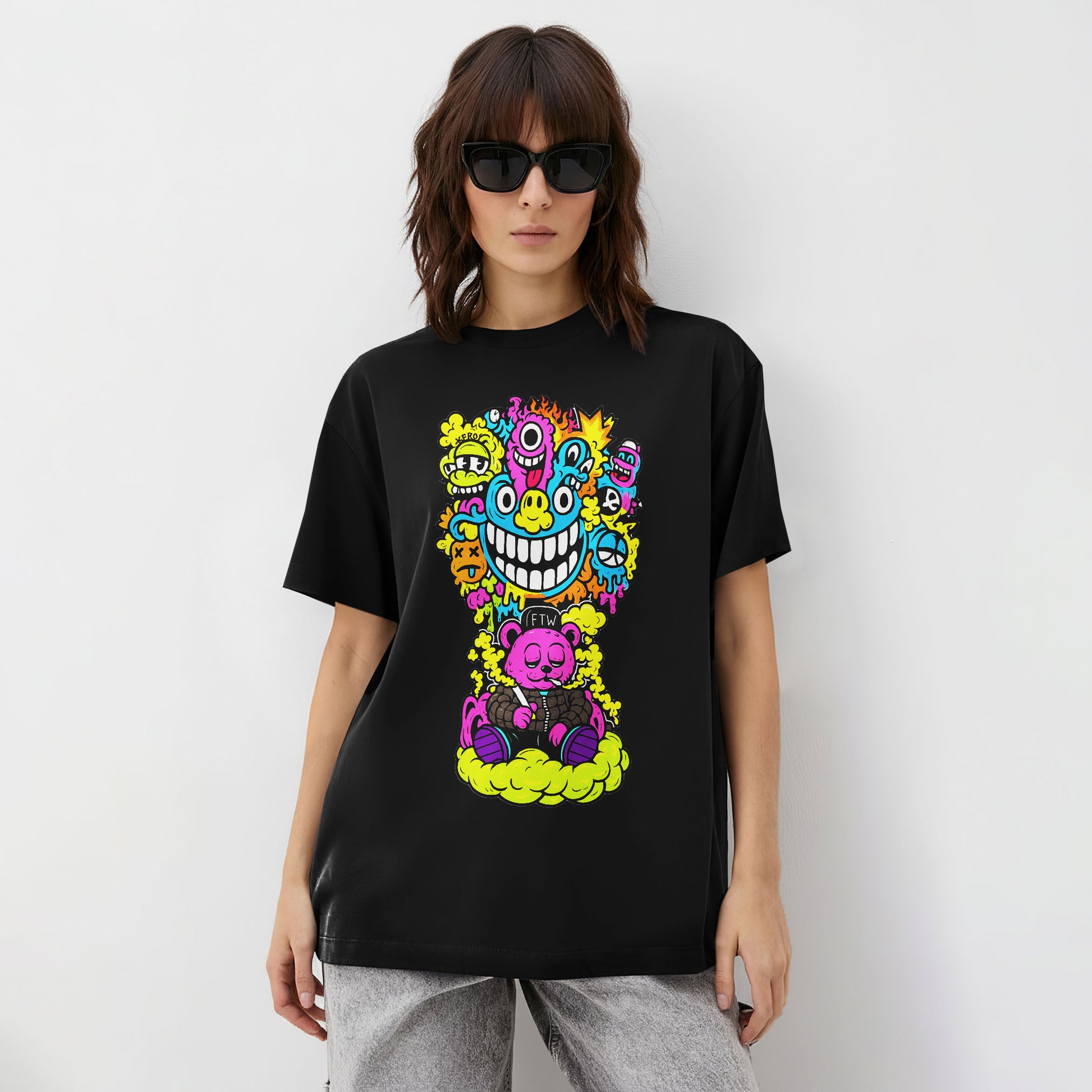 The Acid Pop Doodle Bear Graphic Tee bursts with wild colors and surreal imagination. Featuring a trippy pink bear surrounded by vibrant graffiti-style doodles, this unisex shirt captures the perfect mix of chaos and creativity. Made for those who live boldly and love street art, it’s a wearable piece of pop-art energy — bright, weird, and impossible to ignore.