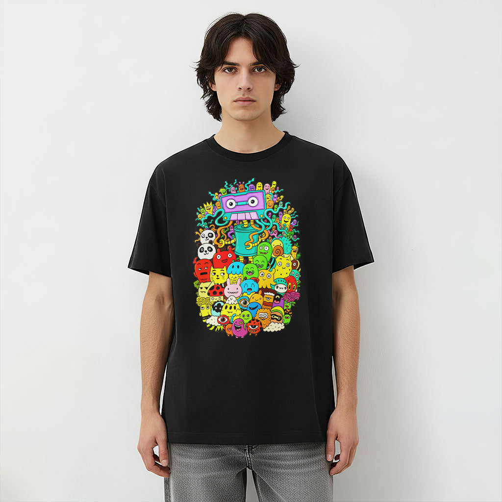 Step into pure creative chaos with the Cassette Doodle Overload Unisex Graphic T-Shirt. A retro cassette floats above a vibrant crowd of quirky doodle characters, blending nostalgia with bold modern art. Printed in sharp, neon-inspired colors on a soft, versatile tee, this piece brings playful energy to any streetwear lineup. Perfect for anyone who loves expressive, character-packed designs.