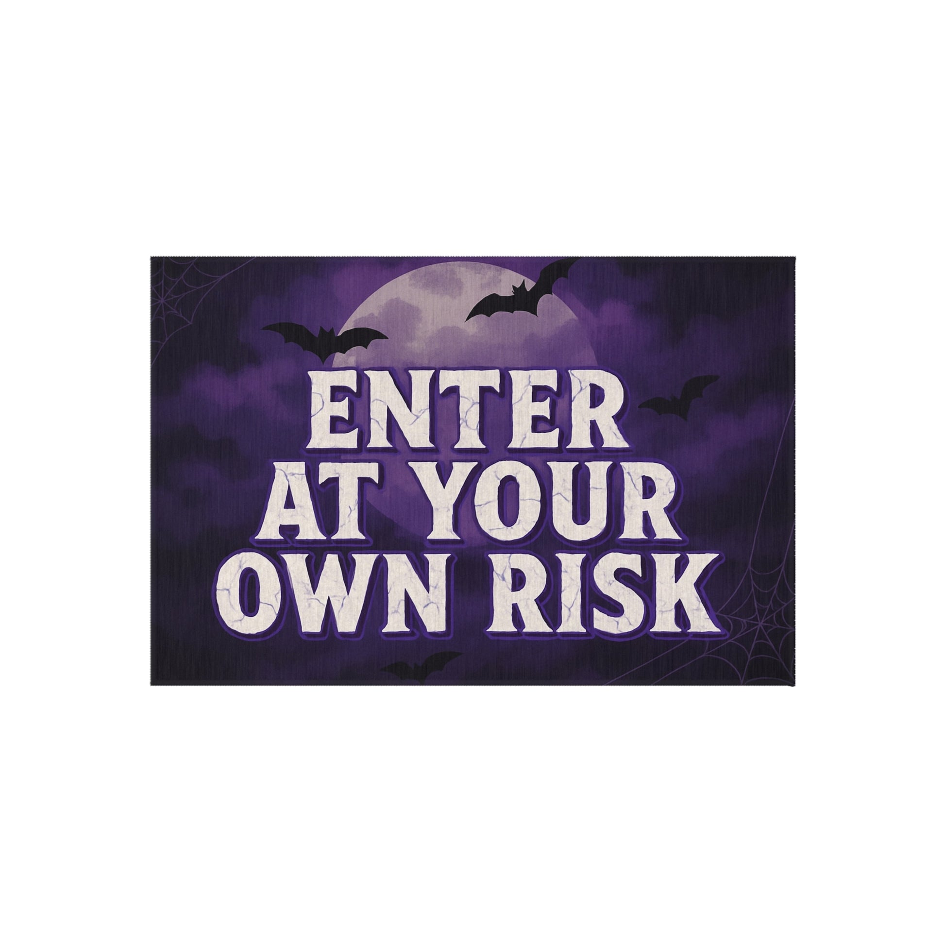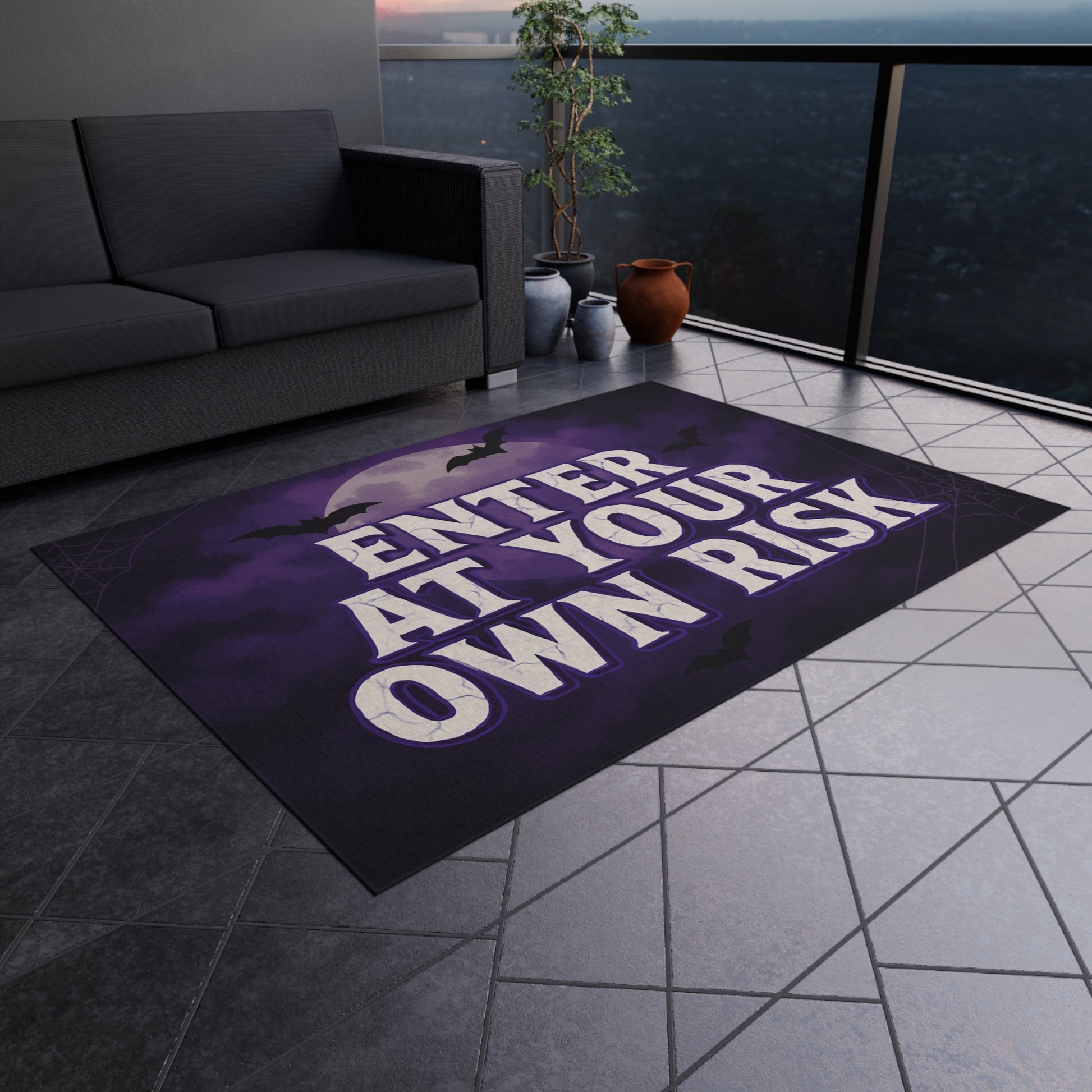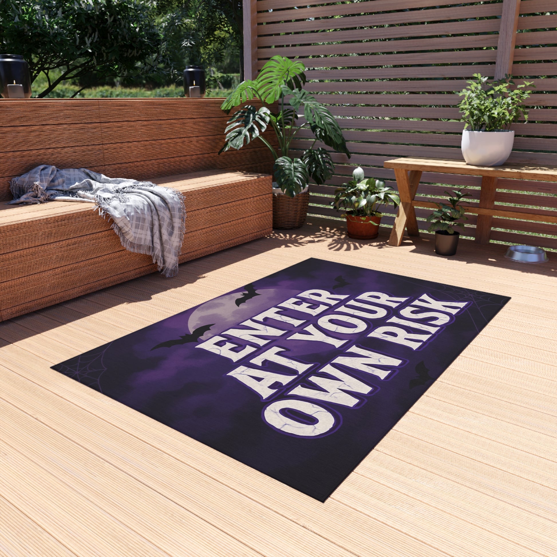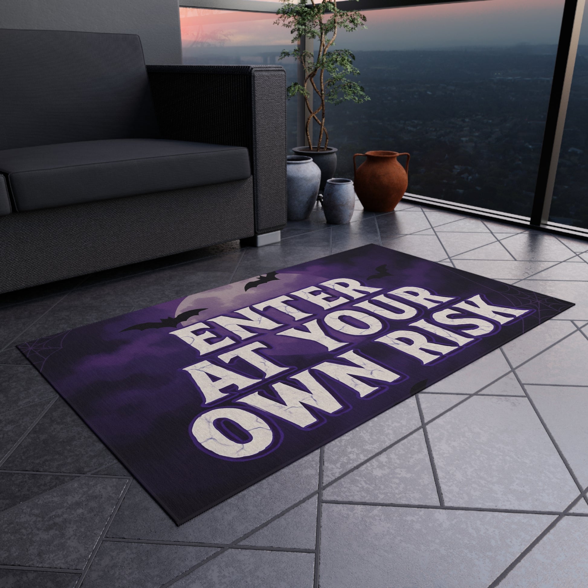 This Enter at Your Own Risk Rug is perfect for creating a spooky atmosphere in your home. It's ideal for Halloween decorations and horror movie lovers. The non-slip bottom ensures safety and the vibrant colors add a pop of color to any space.