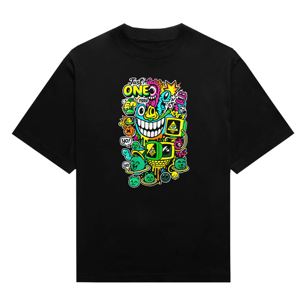 Turn up the chaos with a tee that refuses to be normal. This wild mash-up of neon monsters, quirky faces, and explosive doodle energy captures the exact moment when “just one more” becomes a whole vibe. Printed in bold, electric colors on a soft unisex fit, it’s the perfect graphic tee for anyone who loves loud art, playful rebellion, and standing out without even trying.