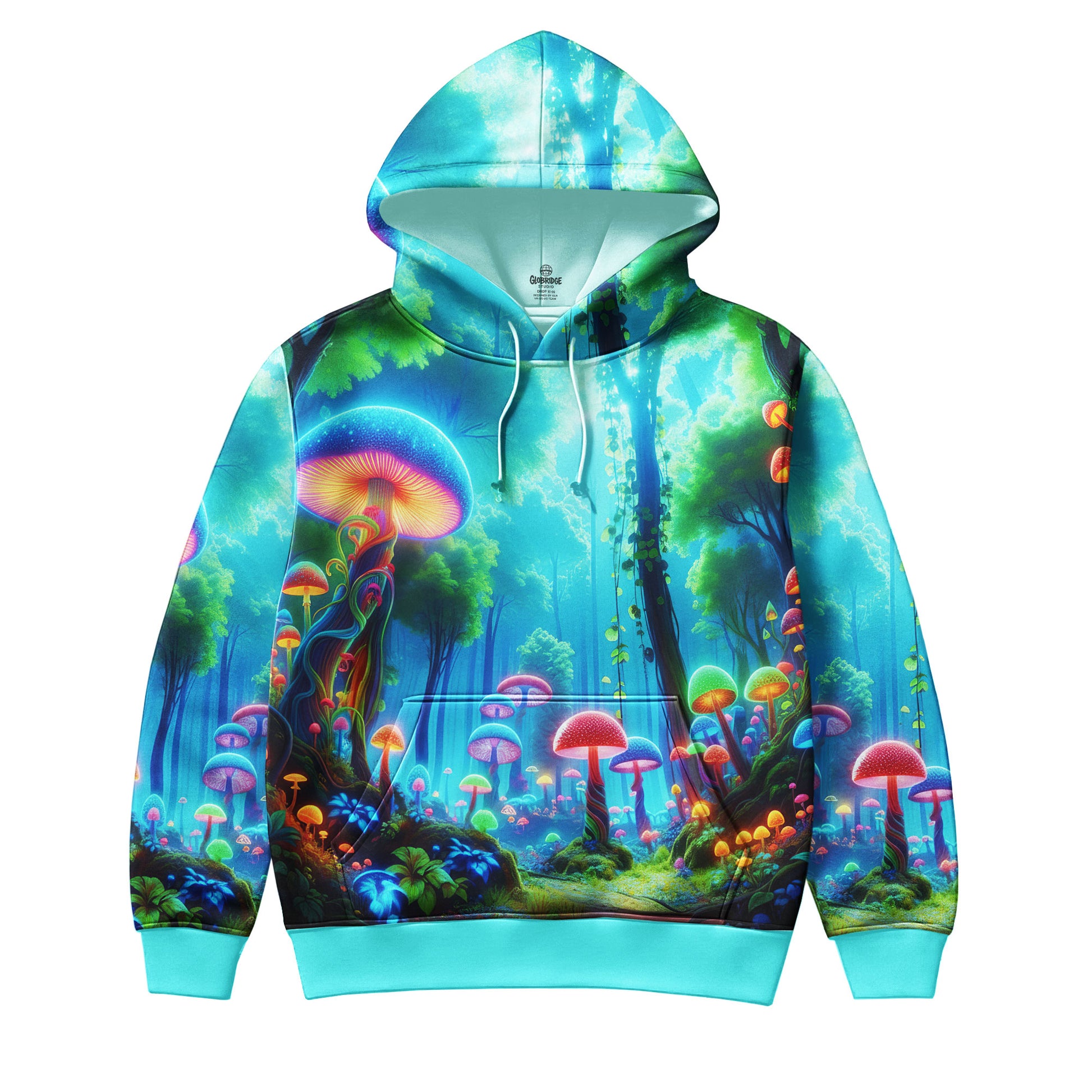 Step into a world of surreal colors and magical vibes with the Mystic Mushroom Wonderland Hoodie. Inspired by enchanted forests and glowing fungi, this all-over print hoodie transforms your everyday fit into a psychedelic dream. Ideal for explorers, creators, and those who live life in full color.