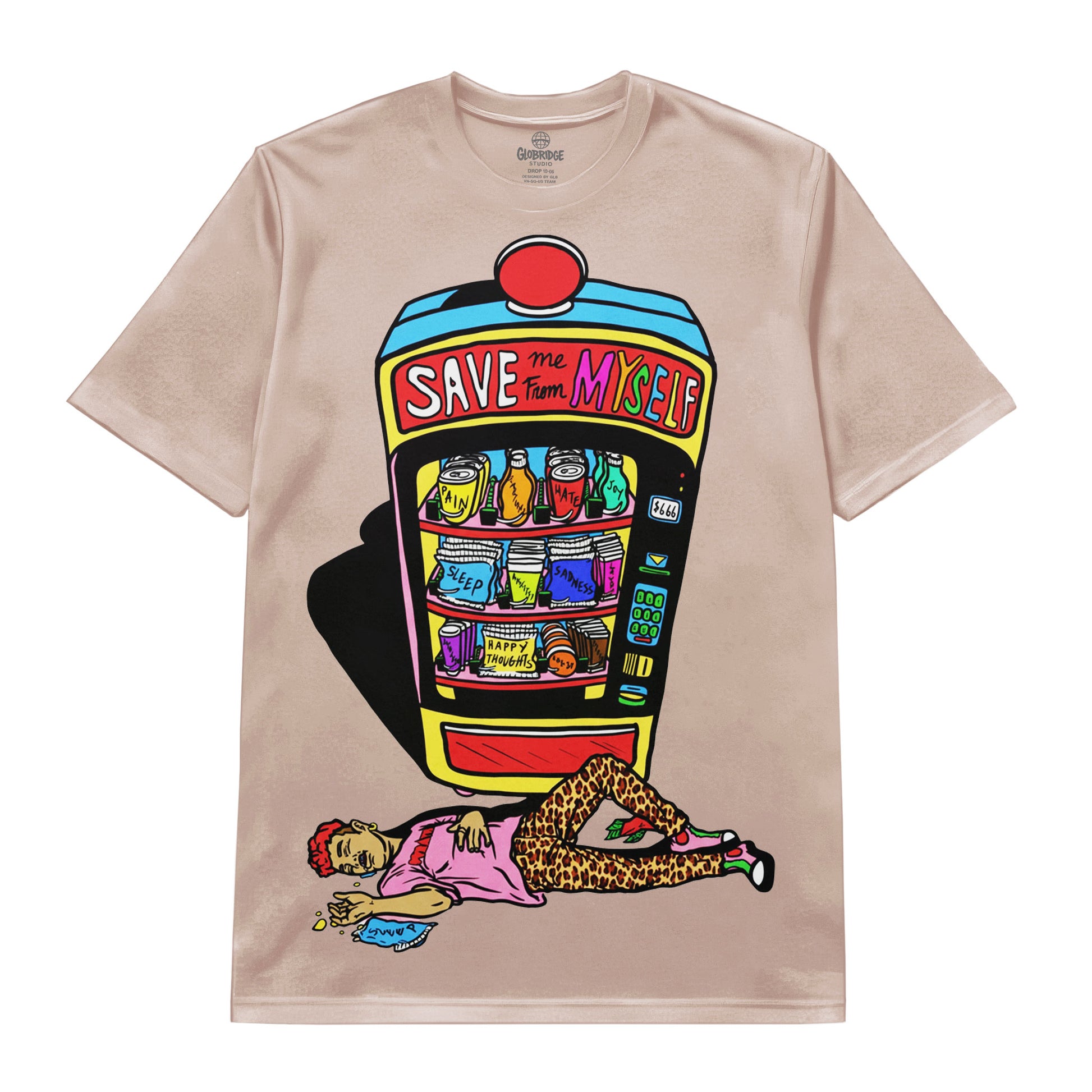 Bold colors, cartoon psychedelia, and raw emotion collide in a statement piece that feels honest, ironic, and painfully relatable. Designed for those who laugh at the madness while living inside it.