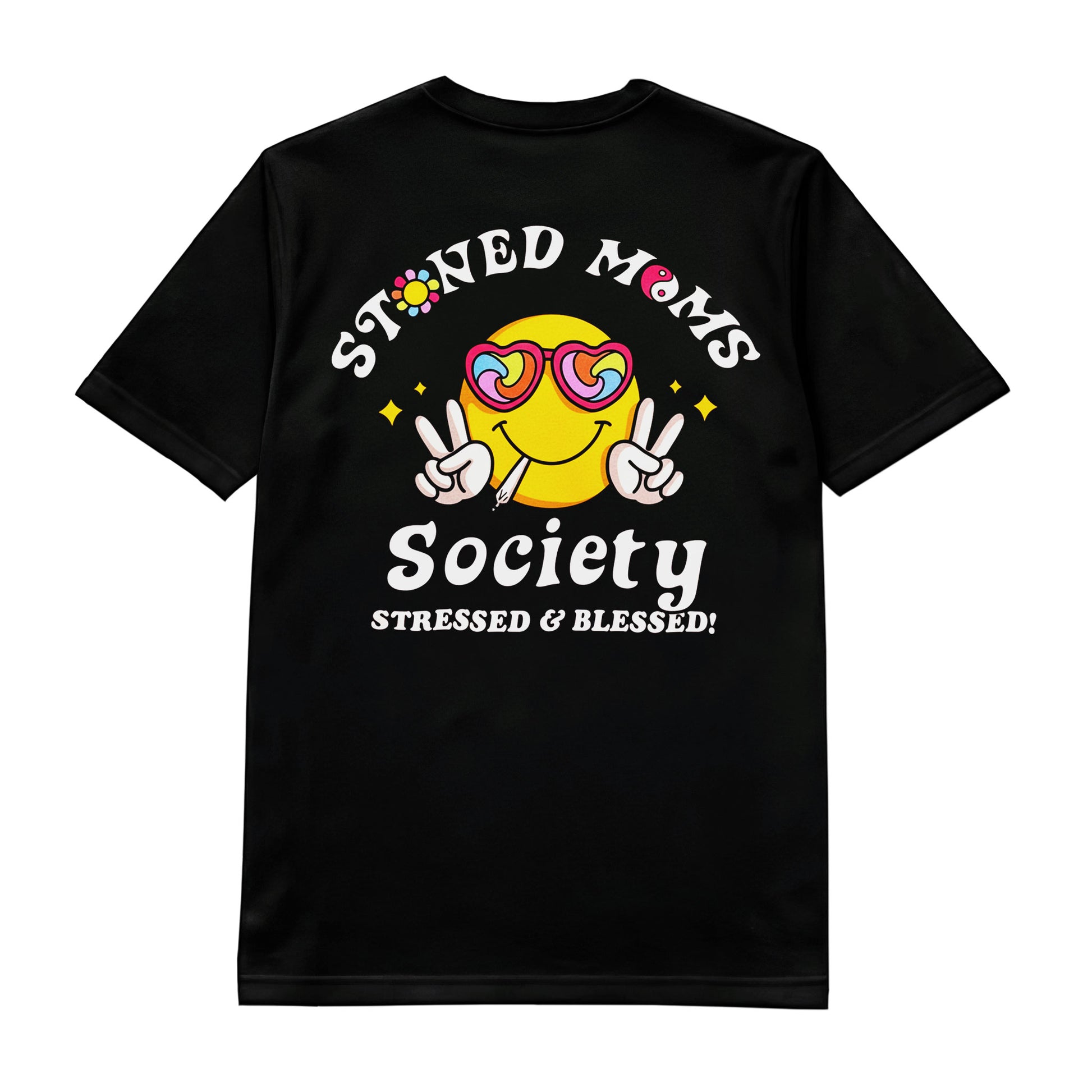 Celebrate the chaos of motherhood with a wink and a puff. The Stoned Moms Society T-Shirt blends retro smiley graphics, vibrant colors, and stoner humor for the moms who are both stressed & blessed. Soft, comfy, and full of attitude — perfect for laid-back days, smoke sessions, or just keeping it real.