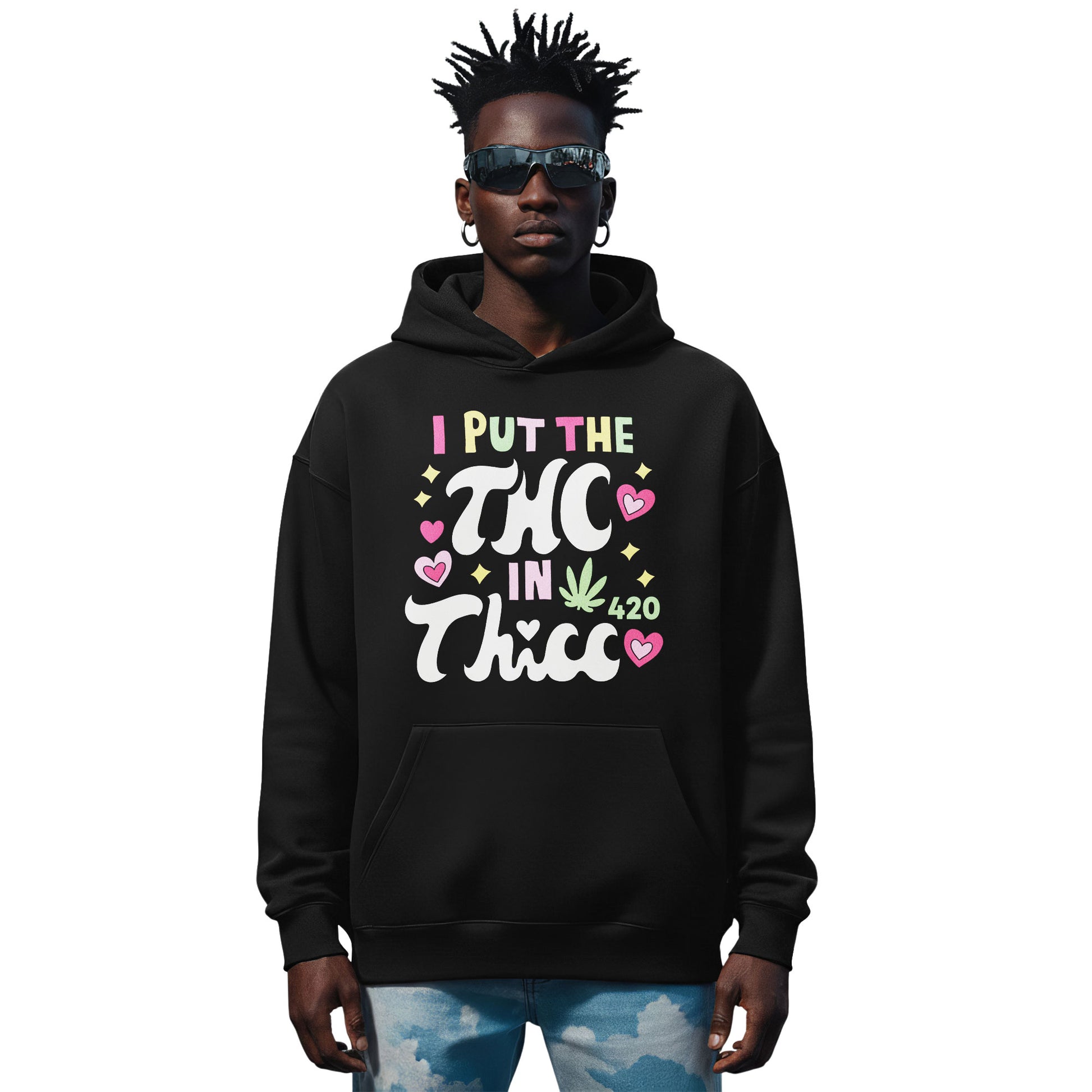 The “THC in Thick 420” Hoodie brings playful typography and bold streetwear energy together in a cozy black silhouette. Designed with a colorful, bubbly graphic that blends humor and attitude, this hoodie makes a fun conversation piece for festivals, casual hangs, and everyday layering. Soft, warm, and easy to style with cargos or denim, it’s the perfect pick for anyone who enjoys expressive graphics and modern street culture.