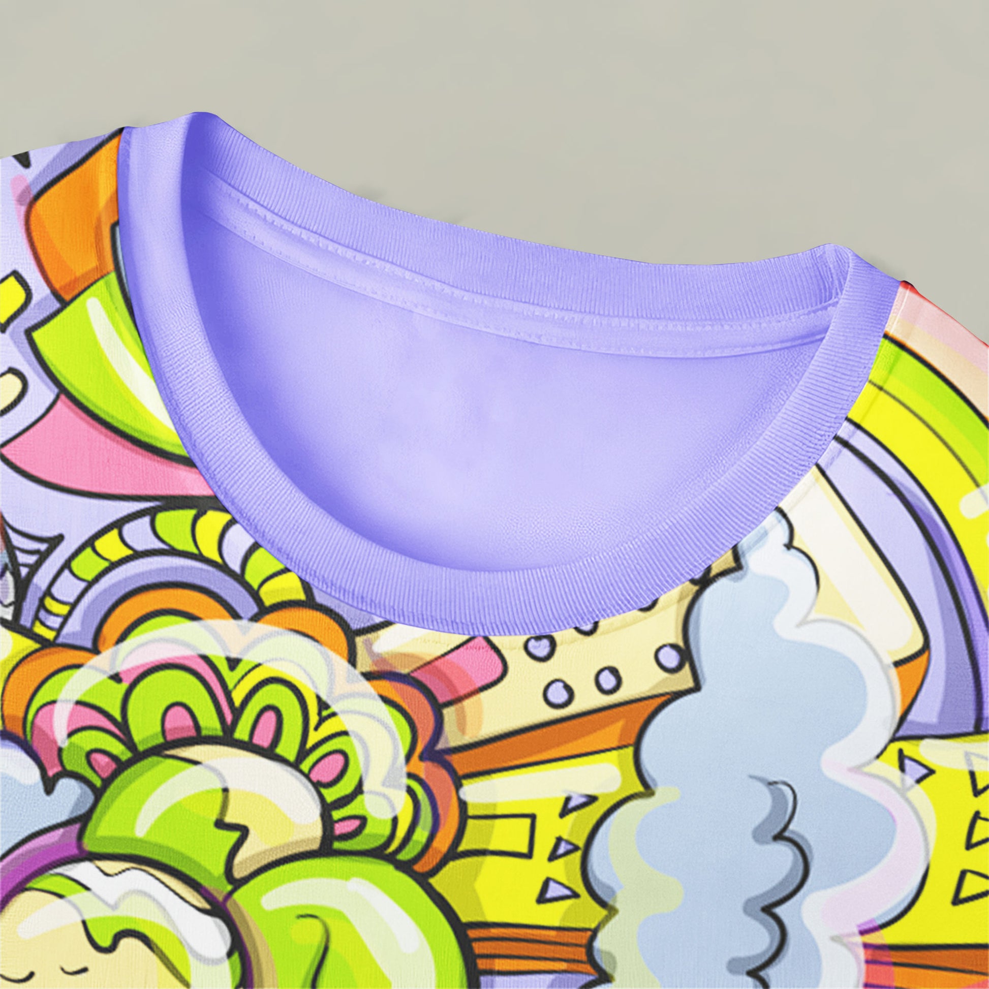 Turn your outfit into a burst of energy with the Urban Cartoon Doodle All-Over Print Unisex T-Shirt. A vibrant explosion of pop-art colors, candy-inspired shapes, and chaotic fun, this tee channels pure street creativity. Made from soft, breathable cotton for a relaxed unisex fit, it’s more than a shirt — it’s wearable art for those who live loud, dream bright, and never blend in.
