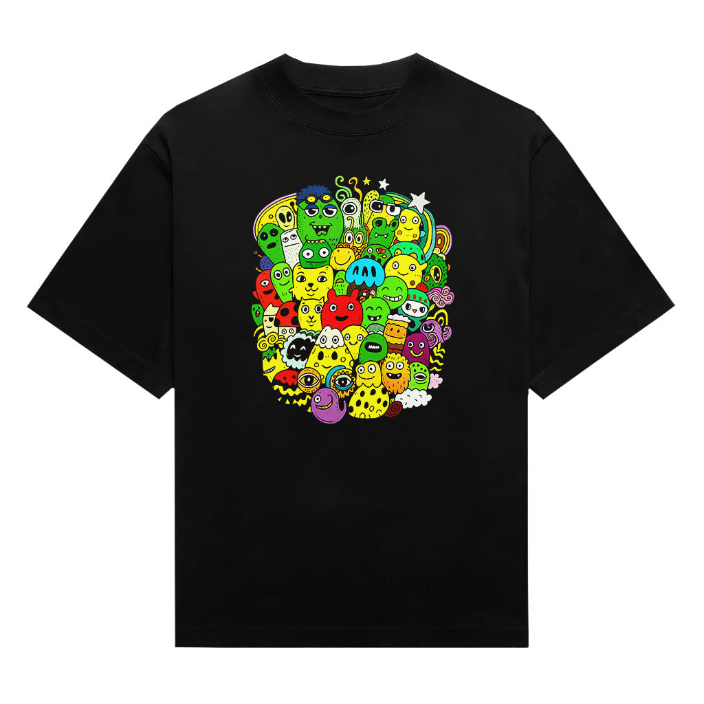 Step into a universe of color and chaos with this vibrant monster-themed doodle tee. Packed with quirky characters and neon details, it brings playful energy to any outfit. Soft, comfortable, and designed for everyday wear — perfect for anyone who loves bold street-art vibes and standout graphic style.